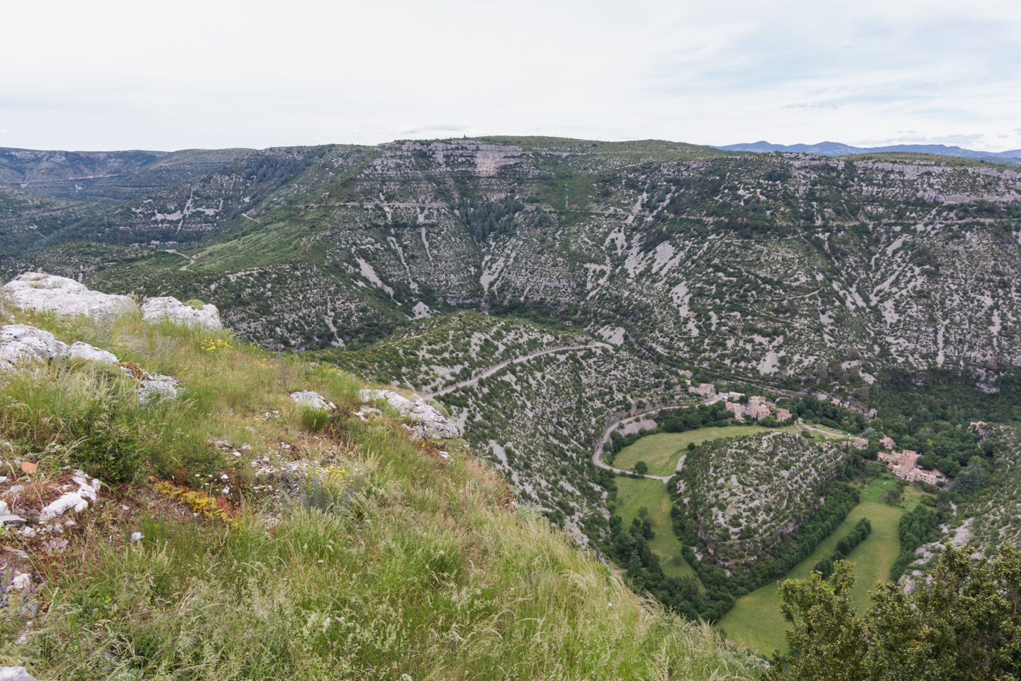 Le panorama est à couper le souffle depuis le belvédère de la Baume Auriol. Nous sommes à 615m d’altitude et le petit hameau de Navacelles en contrebas se trouve quelques 300 mètres plus bas… ça donne presque le vertige ! (Cliquez sur l’image pour la voir en plus grand 😉 )