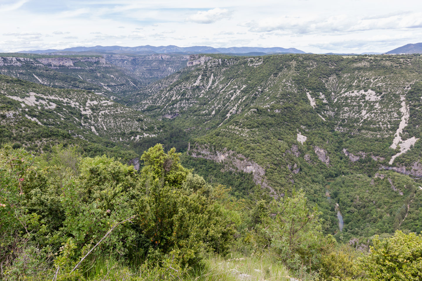 Nous avons pris à gauche et avant d’arrivée au Cirque, nous avons fait une halte car le point de vue sur les gorges de la Vis est exceptionnel. L’on aperçoit tout juste en contrebas la rivière, cachée par la végétation.